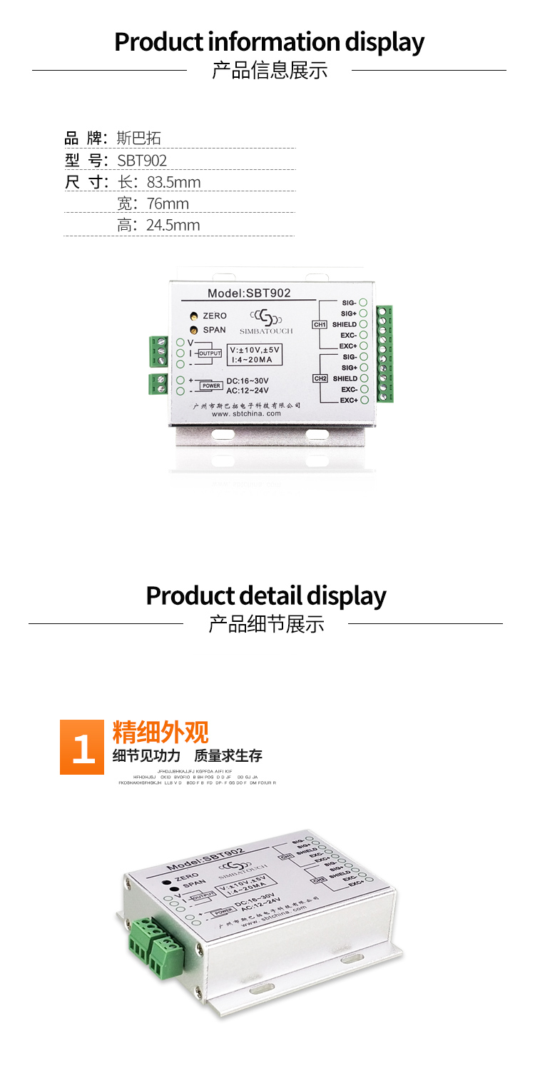 双通道称重传感器放大器高精度-斯巴拓SBT902