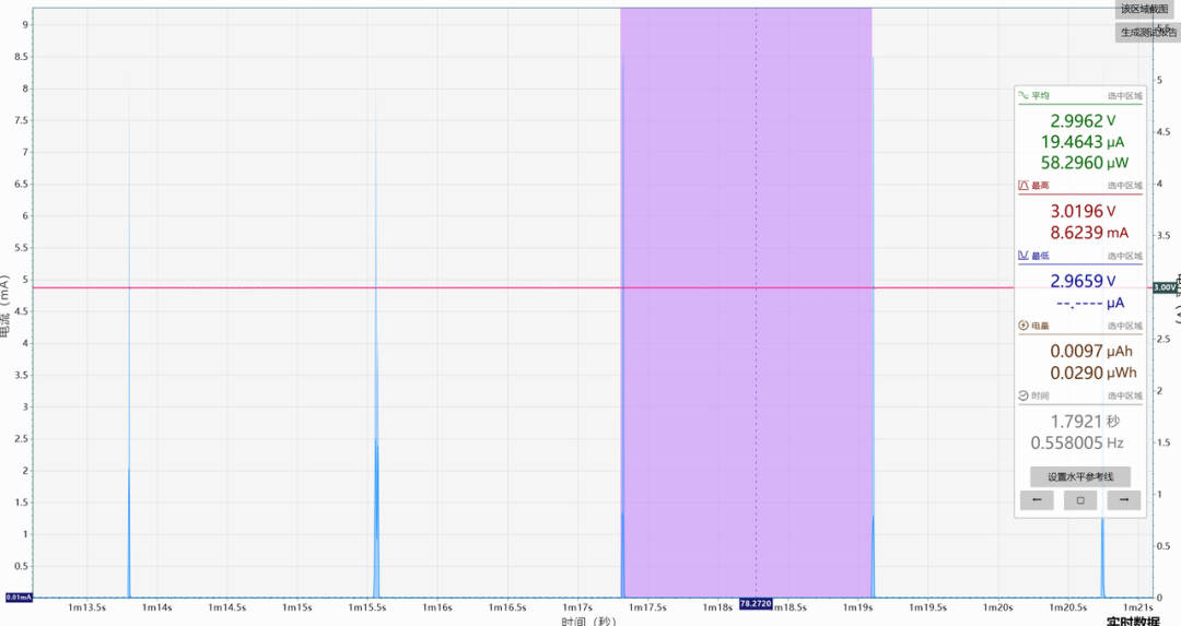本次被测产品均使用纽扣电池,工作电压为3V。通过功耗分析仪PC软件设置页面设置如下: