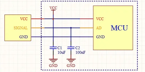 该信号被分为 32 份,产生的 50 Hz 时钟信号通过引脚 2 馈送到传感器。该传感器是一个简单的湿度相关电阻。通常由液体中的 2 根电线组成,可将引脚 3 短接到地或不短接。