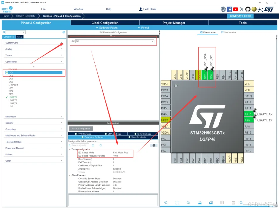 用STM32CUBEMX生成例程,这里使用MCU为STM32H503CB。