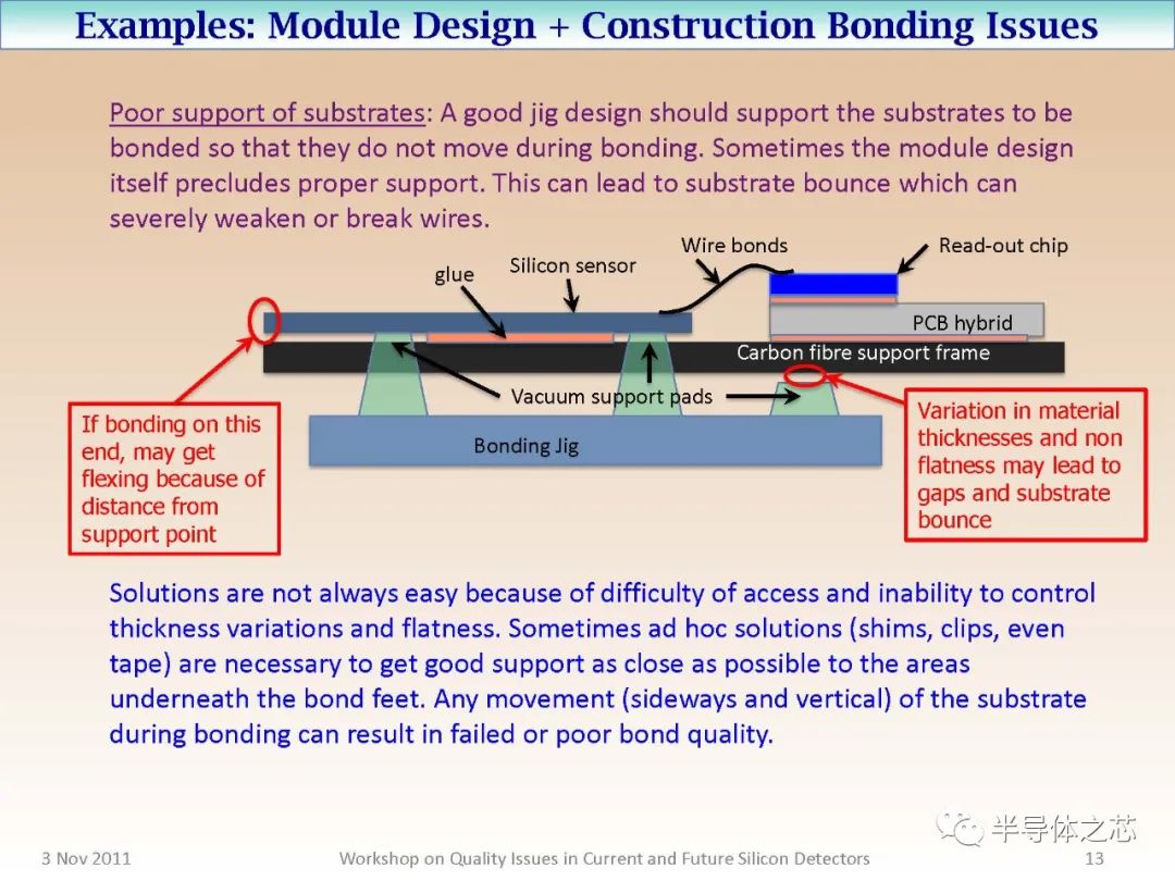 机器问题:硅再次开裂,过多的力量、力量或时间。除非有完全断裂,否则不能发生,除非完全断裂是由粘结脚的抬起引起的。在拉力测试中发现了最坏的情况。通常“OK”在芯片上,而不是在
