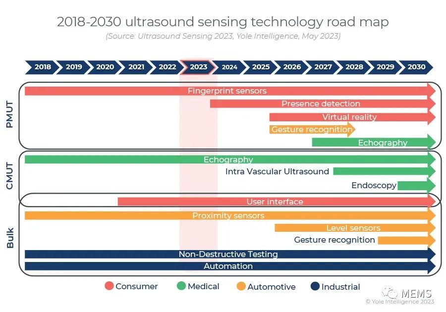 2018~2030年超声传感技术路线图(来源:Yole)