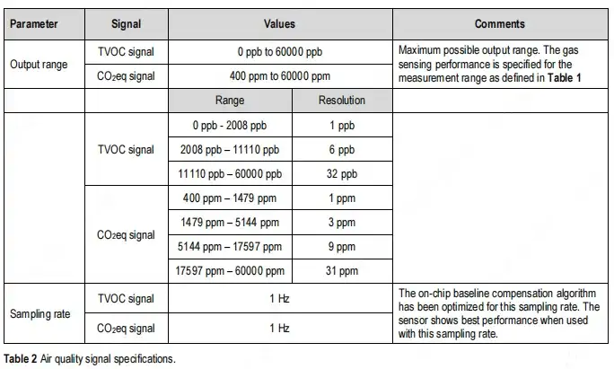 TVOC(TOTAl Volatile OrganIC Compounds,总挥发性有机物),量程为0~60000ppb;CO2浓度,量程400~60000ppm。