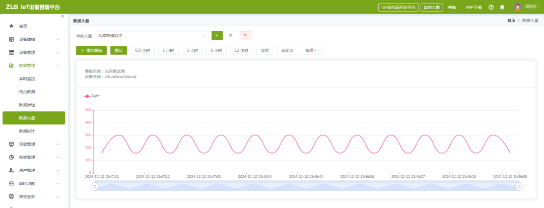 点击“数据大盘>数据看板”,可添加查看数据曲线图表。