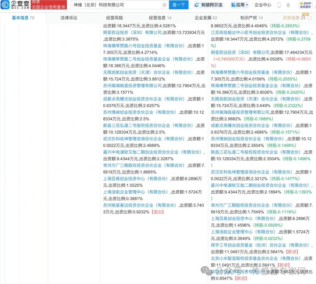 据数据显示,坤维科技本次工商变动中,新增了北京小米智造股权投资基金合伙企业(有限合伙)、舜宇三号创业投资基金(杭州)合伙企业(有限合伙)、深圳市创新资本投资有限公司。